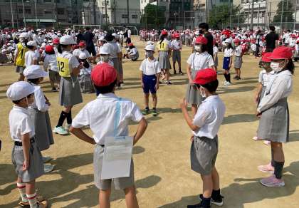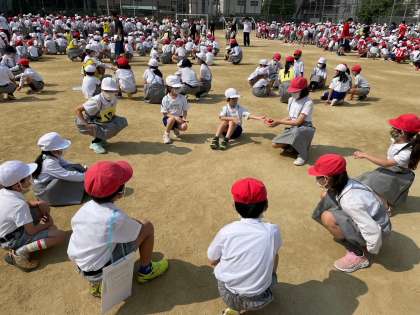 音楽に合わせて赤玉を回し、曲が止まったところで赤玉を持っていた人が、好きな食べ物、特技などを班のメンバーに話していきます。みんなで楽しく取り組みました。