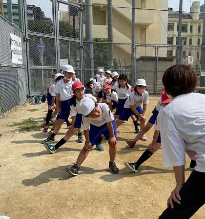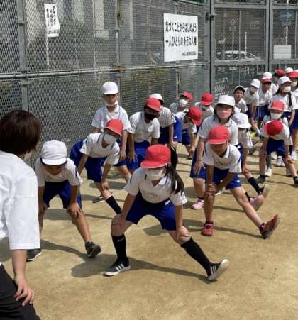 児童集会のあとは、3・4年生が体力テストをおこないました。まずは、しっかりと準備運動をします。
