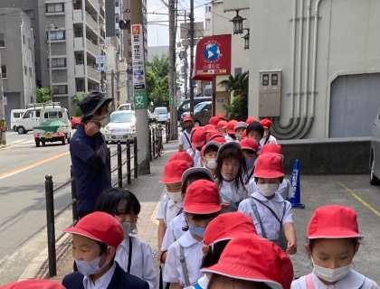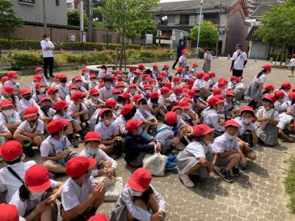次に、松屋町筋商店街から空堀商店街に入り、桃谷公園、上町中学校へと進みました。そして、郵便局、消防署と回り、学校に戻ってきました。普段見慣れている町でも、あらためて回ってみると、いろいろと新しい発見がありました。