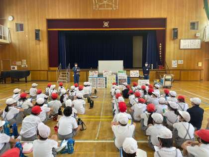 並行して講堂では、大阪市環境局の方からごみの問題についてお話をうかがいました。