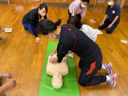 6月13日から始まる水泳学習に備えて、教職員の救急救命講習をおこないました。
