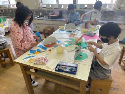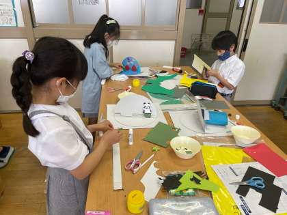 3年生の図画工作の時間です。小中連携の一環として、上町中学校の美術の先生が授業見学に来られました。