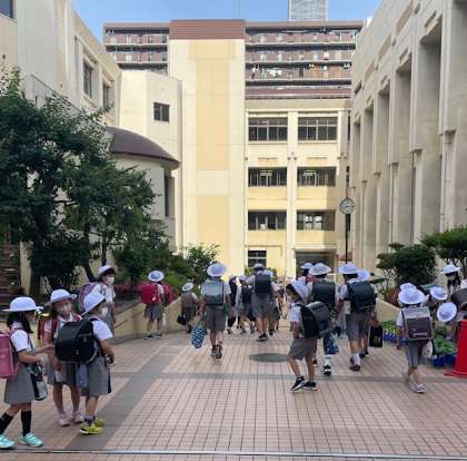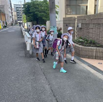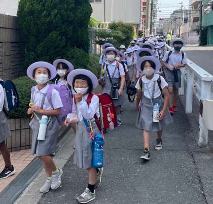 今日から6月。紺色の帽子から夏用の白い帽子にかわりました。朝の日差しにあざやかな白が映えます。子どもたちの笑顔もまばゆいばかりです。