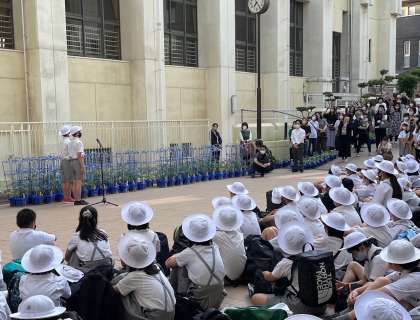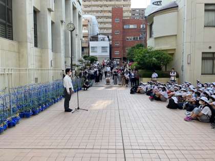 PTAの代表の方から、ごあいさつをいただきました。また、見送りに来ていただいたたくさんの保護者の方にお礼の気持ちを伝えました。
