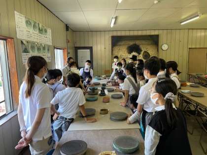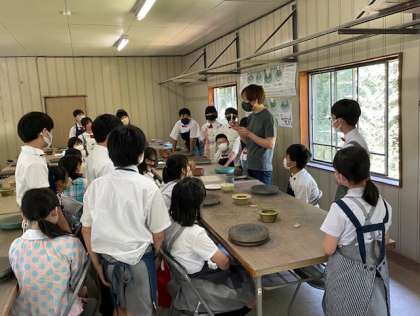 次に、陶芸体験です。クラスごとにいくつかの工房に分かれておこないます。