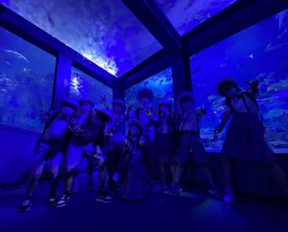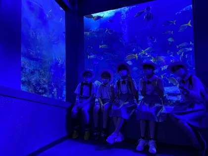 そして、大水槽を裏側から見ると…このような神秘的な世界が広がっています。
