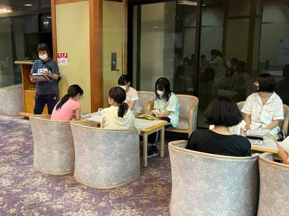 第一日の最後は、リーダー会議です。こちらは、室長会議で、一日の反省をおこなっています。