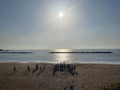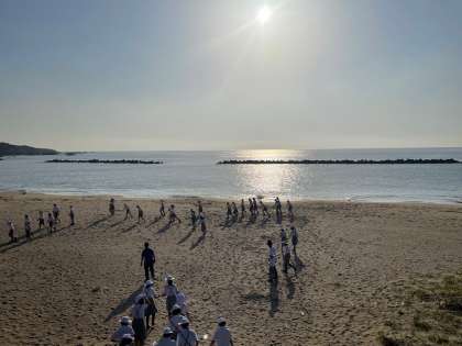 今朝の志摩市の日の出時刻は4:41。日はすでに高く上がっています。子どもたちがビーチに出てきました。
