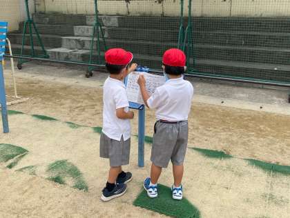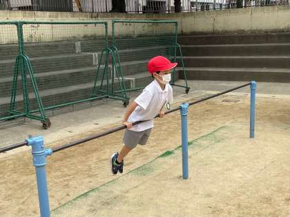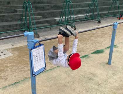 学習カードを見ながら、つばめやだんごむしなど、いろいろな技にチャレンジしています。
