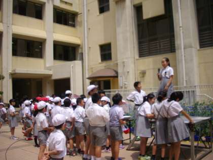 健康委員会の児童が来週の手洗いうがい強調週間にむけて、休み時間に手洗いうがいの大切さを演説してくれました。