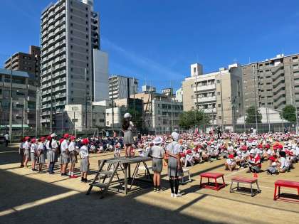今朝の児童集会の様子です。とてもきれいな青空が広がる中、集会委員会の子どもたちの気持ちのよいあいさつで始まりました。
