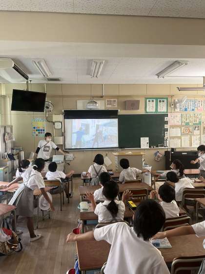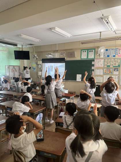 来週からのプール開きを前に、2年生は水慣れ体操の動きを確認していました。子どもたちは、水泳学習を楽しみにしているようです。