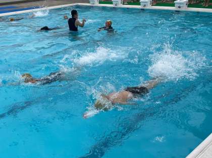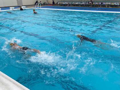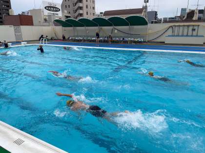 その後、25メートルをクロールで泳いでみました。水に浮く感覚や水の中を進む感覚を少しずつ取り戻しながら運動を楽しみました。