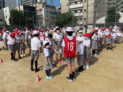 誕生日順や靴下の長い順など、集会委員会が出したお題に沿って、声を出さずにジェスチャーだけでメンバーの順番を並び替えるゲームです。