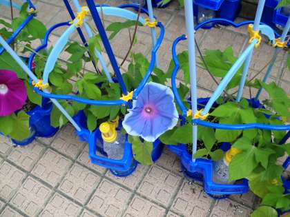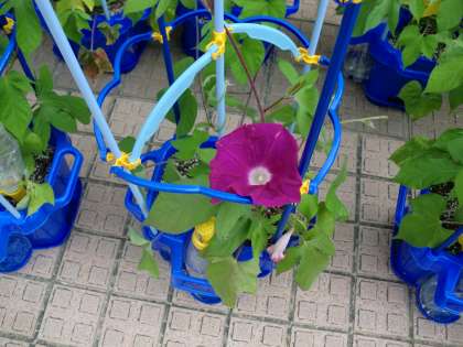 今日学校に来てみると、あさがおが咲いていました。まだ、全員の鉢の花は咲いていませんが、今日からどんどん咲いていくでしょうね。