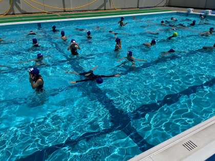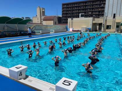 続いて、2年生の水慣れの様子です。上手に大の字で浮いていますね。
