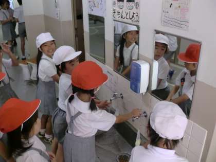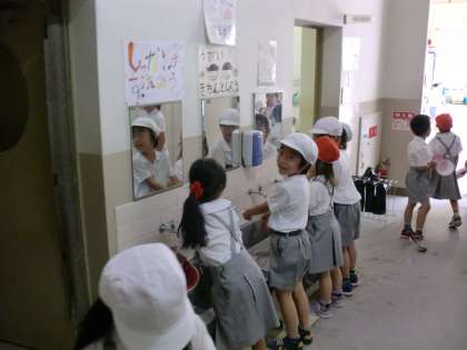 健康委員会中心に、手洗い・うがいを呼びかけています。