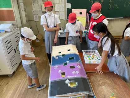 そして、最後は「玉落とし」コーナーです。カラフルでダイナミックな装置が自慢のお店です。準備も本番もよくがんばりましたね。
