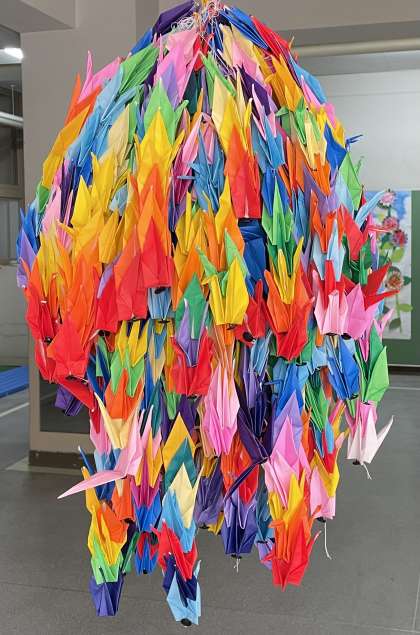 「平和を願う おりづる集会」で中央小学校のみんなで折ったおりづるが完成しました。平和をおびやかす出来事が多い今だからこそ、このような取り組みを続けていかなければならないとあらためて思います。