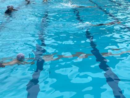水に親しんできたおかげで、大きなプールにも慣れ、伏し浮きやけのびもずいぶん上手になりました。