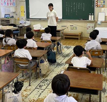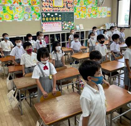 今日の5時間目、各教室で放送による終業式をおこないました。大阪市歌斉唱のあと、校長先生のお話を聞きました。そのあと、生活指導担当の先生のお話を聞き、校歌斉唱をしました。最後に担任の先生からのお話を聞き、明日から始まる夏休みの過ごし方についてみんなで考えました。8月25日にまた元気な顔で会いましょうね。それでは楽しい夏休みを!
