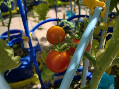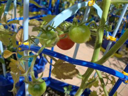 ミニトマトが赤くなってきました。 (2年)