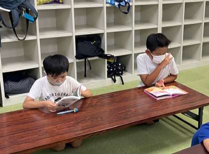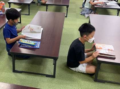 多くの子どもたちが涼しい部屋の中で静かに読書を楽しんでいます。