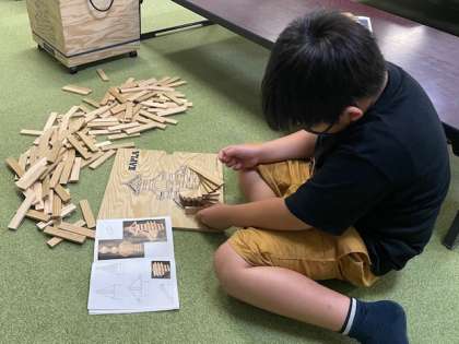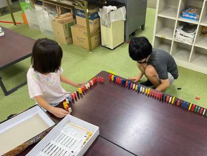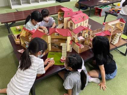 また、積み木をたくさん並べたり積み上げたりして遊んだり、ドールハウスでストーリーを作りながら遊んだりしています。