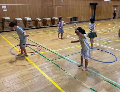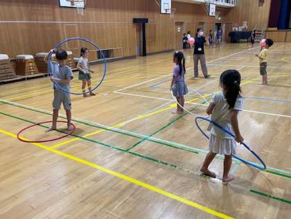 そして、体育館では、ボールやフープを使って思う存分身体を動かしています。