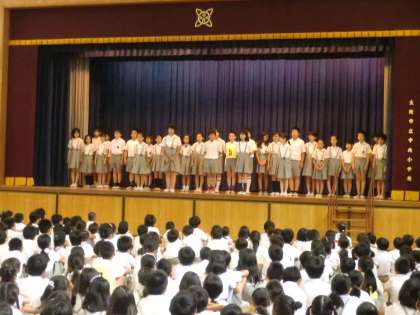 また、児童会からはあいさつ週間についての連絡がありました。その後あいさつソングに合わせ、みんなで踊りました。