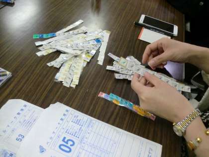 昨日に引き続き、今日もベルマークの回収・仕分け作業を、PTA学級委員さんが中心となって行いました。