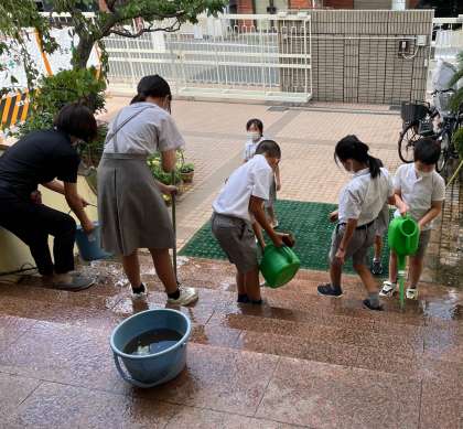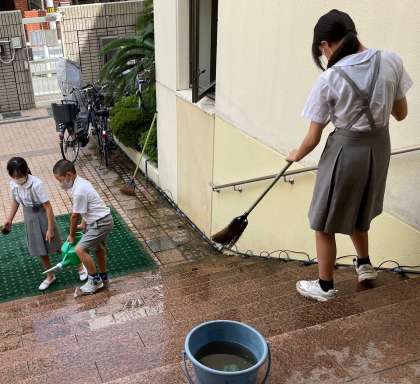 長年の間にたまっていた細かい汚れも落ち、ピカピカの階段になりました。がんばってくれたみなさん、ありがとう。