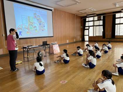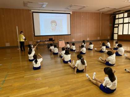 とんとんすりすりゲームという頭の体操をしてから、保健室のお二人の先生からのお話を聞きました。