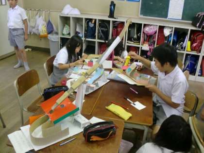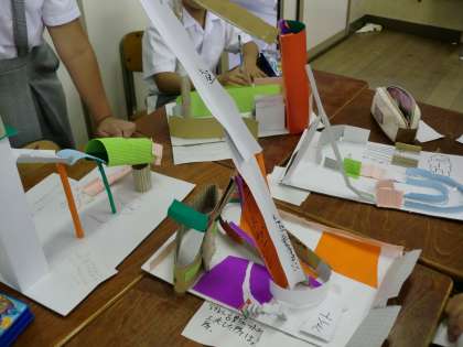 実際にビー玉を転がして、工夫したところを説明している子どももいました。