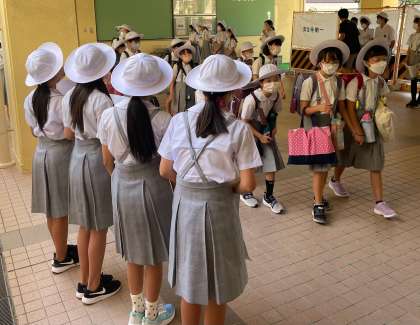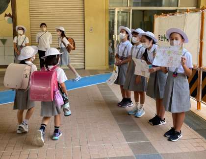 あいさつ週間2日めの様子です。昨日の反省を踏まえて、今朝は子どもたち自身が立ち位置を変えて、工夫して臨んでいました。