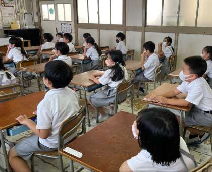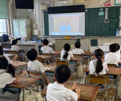 今朝の児童集会は、放送委員会の活動の様子をみんなに知らせるために、ビデオを使って発表しました。