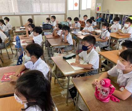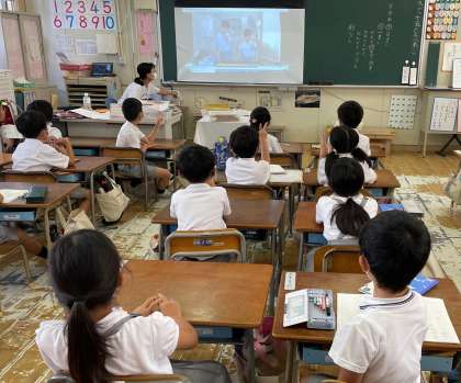 また、放送室の機器の説明や放送している音楽の紹介、運動会の時の放送係の苦労話など、とてもわかりやすく教えてくれて、1年生の子どもたちも興味深そうに見ていました。