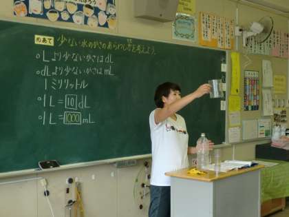 実際に実験したり実物を提示したりすることで、量感を捉えやすくしています。