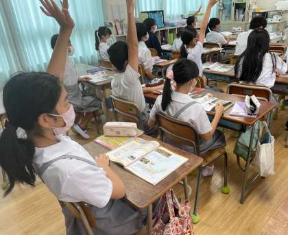 6年生の社会の時間です。室町時代に日本で栄えた文化について学習しています。