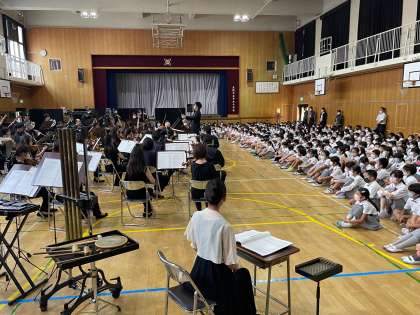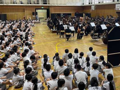 それはなぜかというと、文化庁の「子供のための文化芸術鑑賞・体験再興事業」を受けて、本校の4〜6年生対象に「大阪交響楽団」の演奏会が開かれたからです。