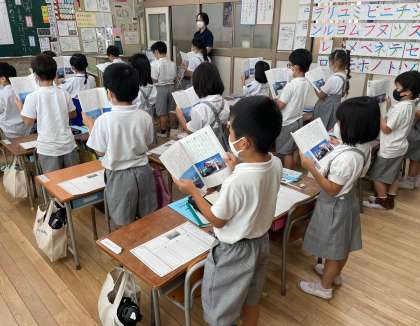 今回は、漁船について書かれた部分の学習です。教科書の本文の構造を読み取るために、音読をおこなっています。いい姿勢と張りのある声で、しっかりと読むことができました。