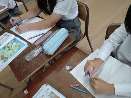 きれいな円を描くことができるようになってきたので、マス目を使って、魔法陣のような不思議な模様を描くことにチャレンジです。