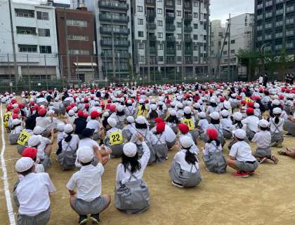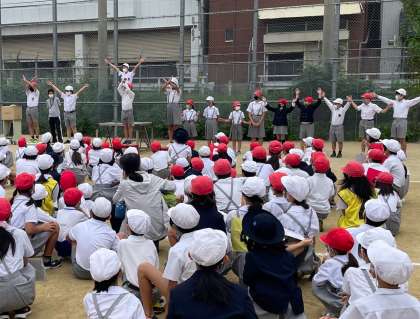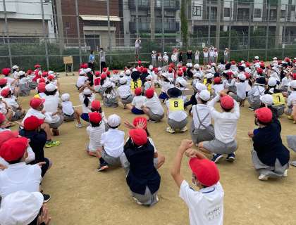 集会委員会の子どもたちのあとにグー・チョキ・パーを出して、勝つ、あいこにする、負けるのうちのいずれかの指示通りに出すというゲームです。あとだしでは、負けるのが一番難しいということがわかりました。
