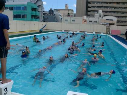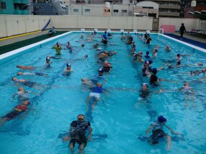 さすが6年生。着衣泳も3回目で、浮くことは余裕のようです。