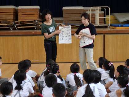 7月16日(木)の2時間目、ゲストティーチャーを招いて、韓国・朝鮮の遊びを教えていただきました。