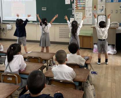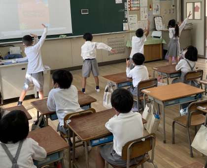 1年生の教室です。体育学習発表会に向けて、ダンスの最後の仕上げをしています。