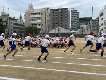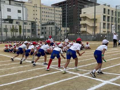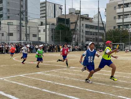 続いて、4年生のリレーです。最後まで、抜きつ抜かれつのデッドヒートが続きます。