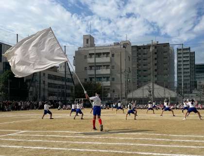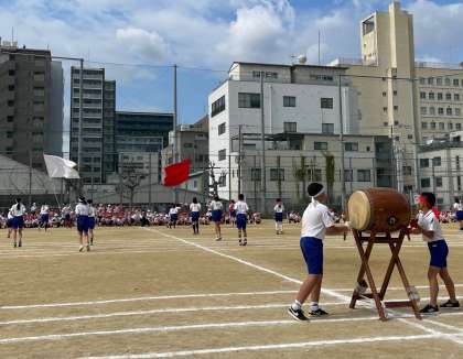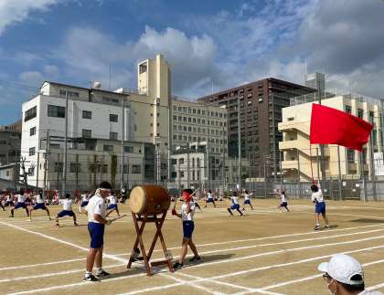 まずは、応援合戦です。これまで毎日昼休みに自主練習を続けてきた応援団の子どもたちが、晴れの舞台でその成果を見せてくれました。