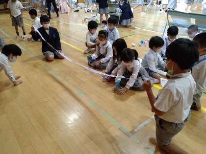 コップを輪ゴムの力で高く飛ばす「ぴょんコップ」や、折った厚紙を輪ゴムではねさせる「パッチンジャンプ」です。