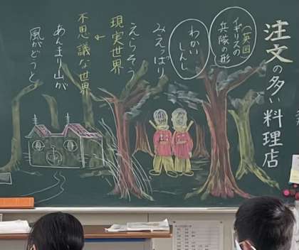 5年生の国語の時間です。宮沢賢治の「注文の多い料理店」を読んで、現実世界と幻想世界を行き来する物語の面白さに浸ります。